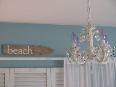 above the bed we hung our beach sign that I got Bobby for Christmas last year